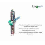 - Oczyszczona woda przepływa przez wylot do zbiornika.