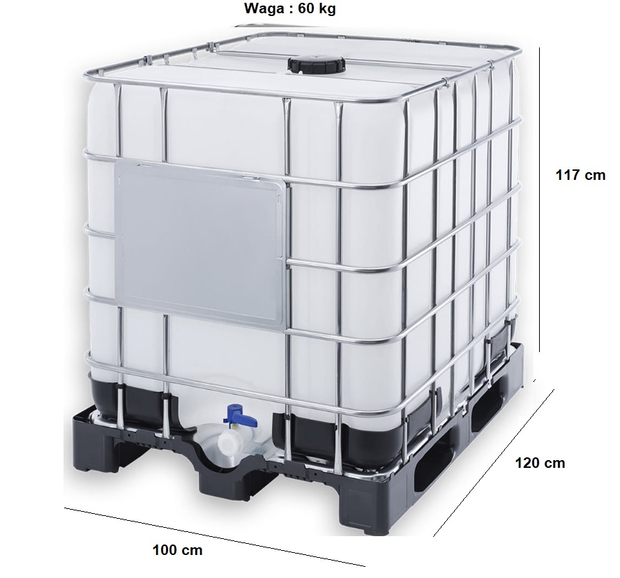 Zbiornik mauzer 1000l, wykorzystywany jest przez gminy, jednostki komunalne i instytucje publiczne jako element zabezpieczenia rezerwy wody pitnej.