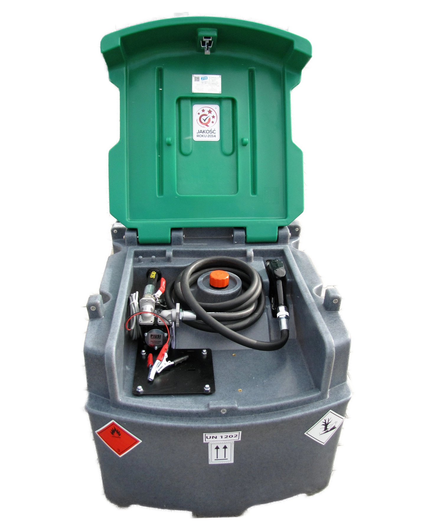 Kompaktowa konstrukcja zbiornika pozwala na wygodny transport oleju napędowego przy użyciu dowolnego pojazdu dostawczego.