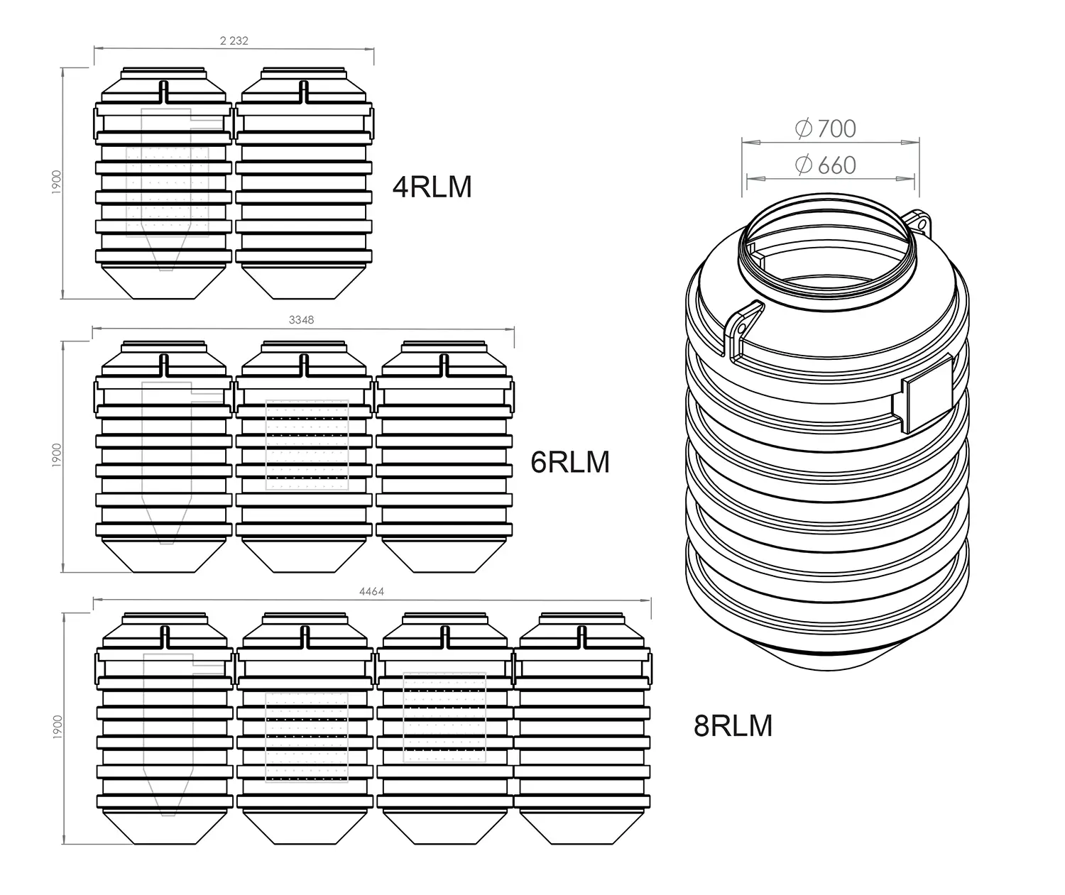 • Zbiornik: czterokomorowy, monolityczny PE z wewnętrznym wzmocnieniem stalowym; pionowe użebrowanie