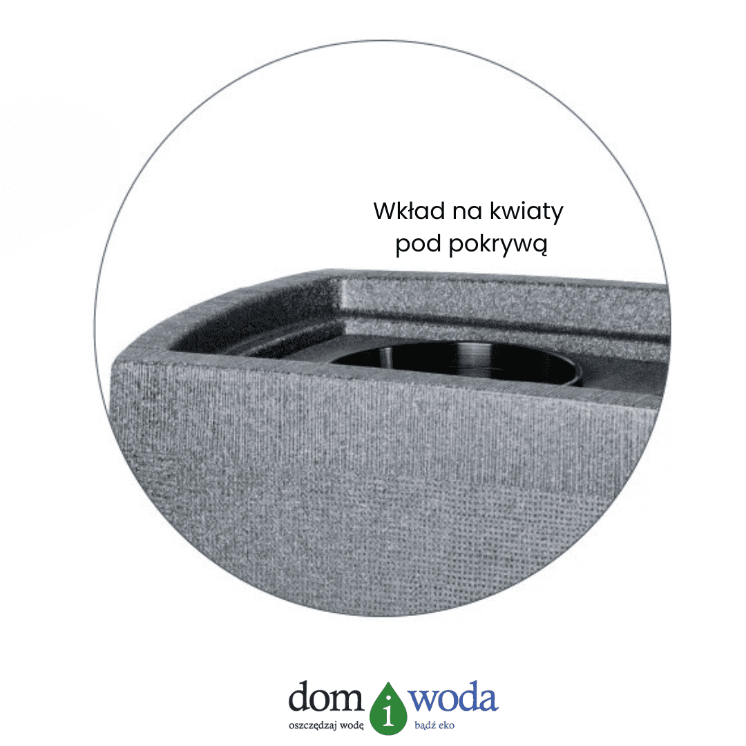 Na górze znajduje się pokrywa odporna na wiatr, a w zestawie znajdziesz także tacę na rośliny, dzięki której możesz ozdobić zbiornik doniczką i korzystać z niego nawet bez pokrywy.