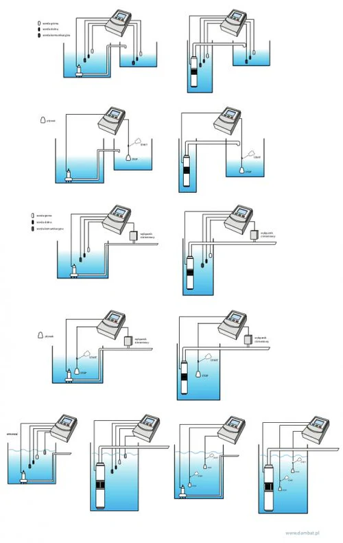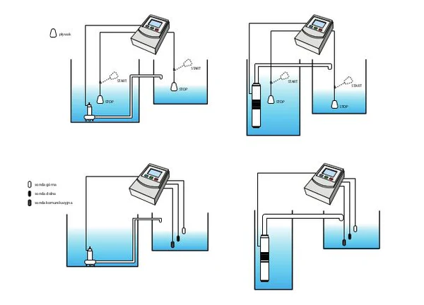 Kontroler M21 może współpracować z pływakami sondami poziomu wody oraz wyłącznikami ciśnieniowymi i zbiornikami hydroforowymi. Może być stosowany zarówno w instalacjach poboru wody ze studni jak i w systemach nawadniania zbierania deszczówki oraz w instalacjach ściekowych.