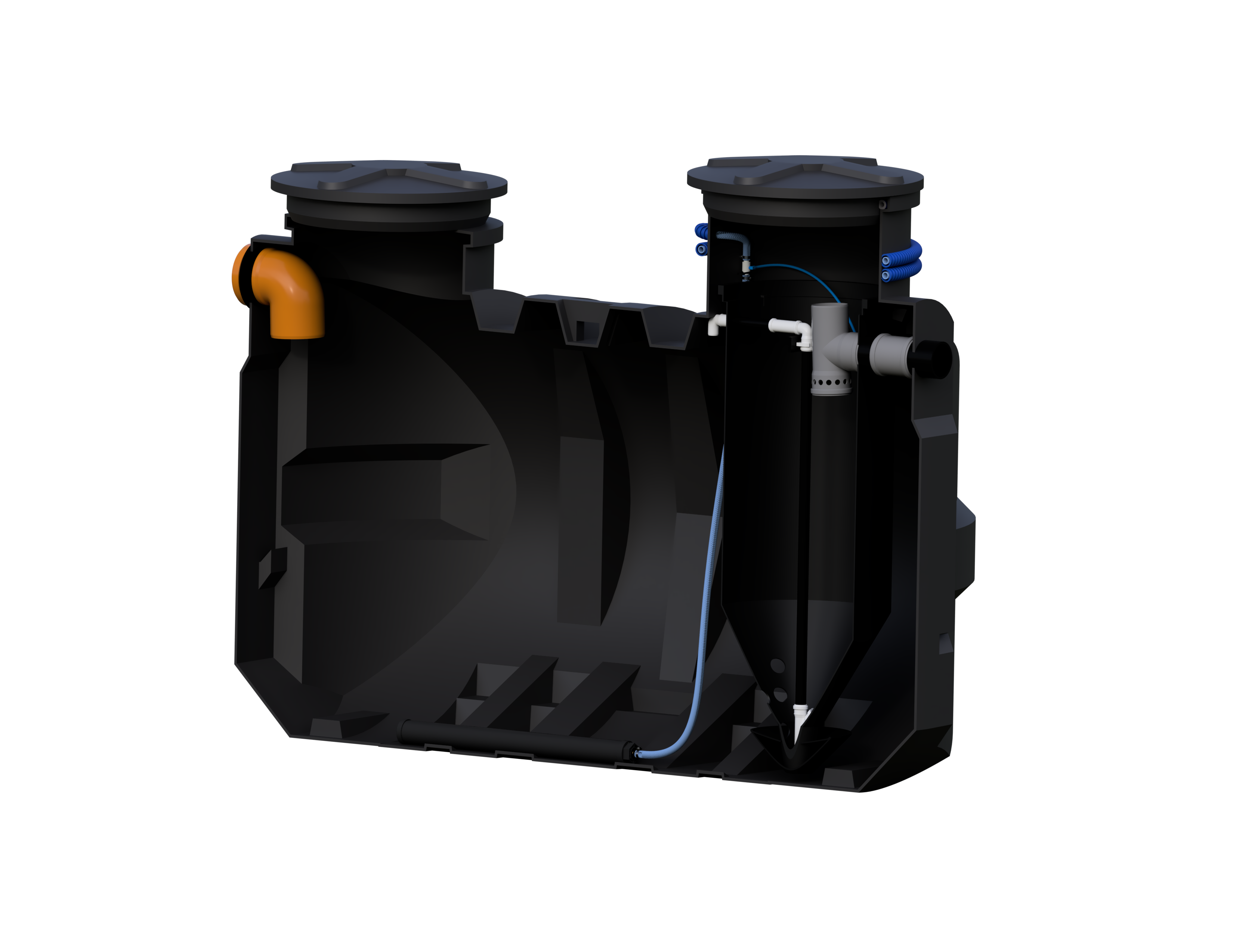 - zbiornik z osadnikiem wstępnym i reaktorem biologicznym,