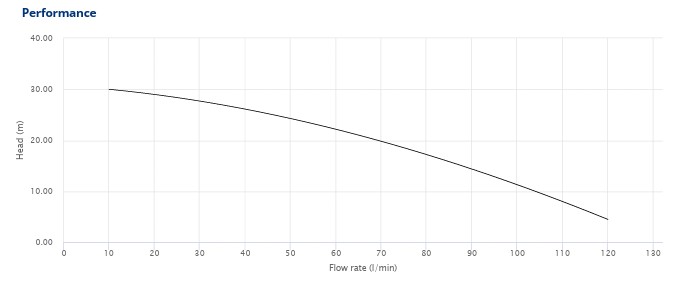 Wysokość podnoszenia: maksymalnie 31 m (od 30 m przy niskim przepływie do 4,5 m przy maksymalnym)