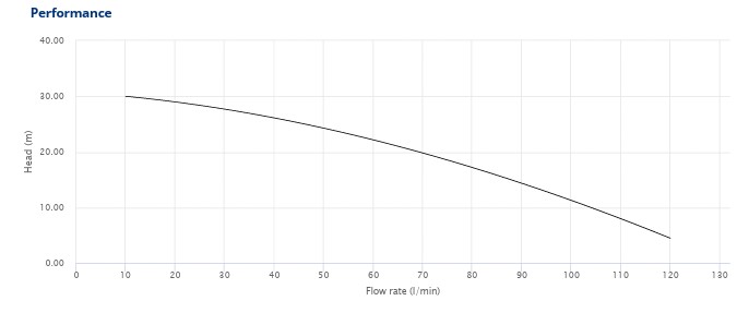 Wysokość podnoszenia: maksymalnie 30 m (od 30 m przy niskim przepływie do 4,5 m przy maksymalnym)