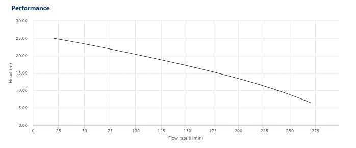 Wysokość podnoszenia: maksymalnie 26 m (od 26 m przy niskim przepływie do 2 m przy maksymalnym)