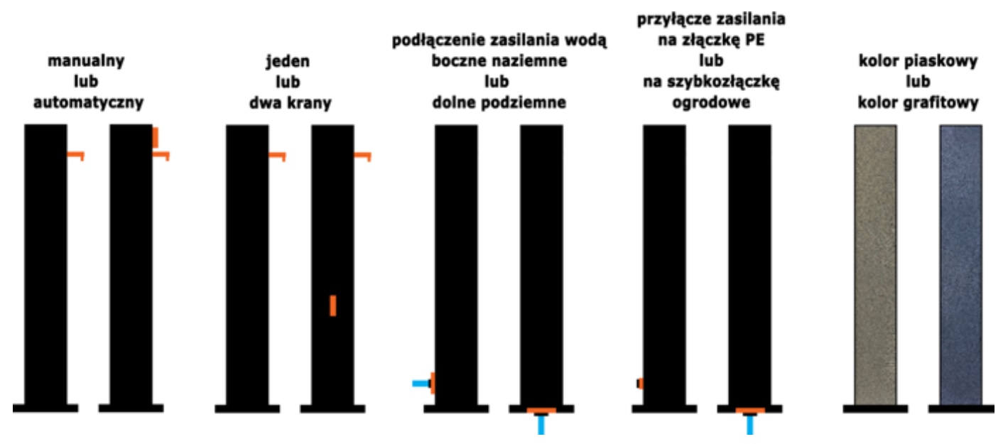 Punkty poboru wody oferujemy w kilku wariantach w kolorze piaskowym lub grafitowym: