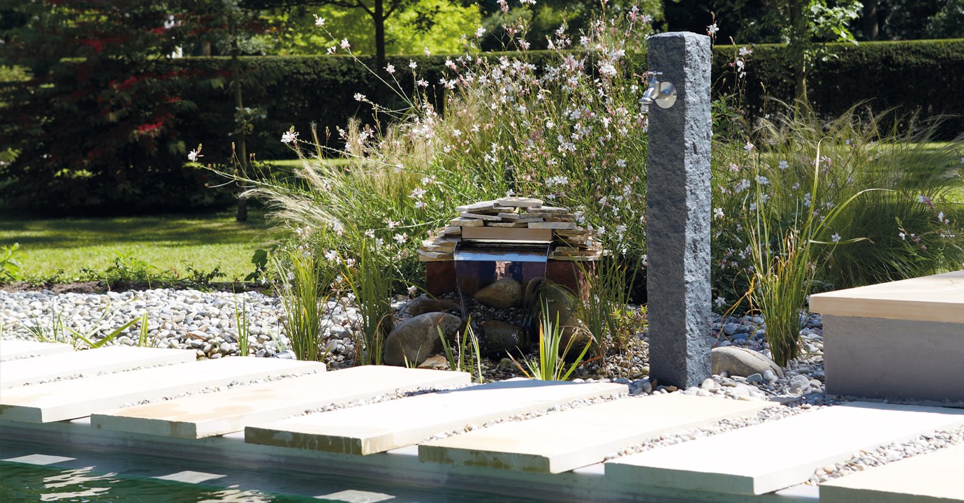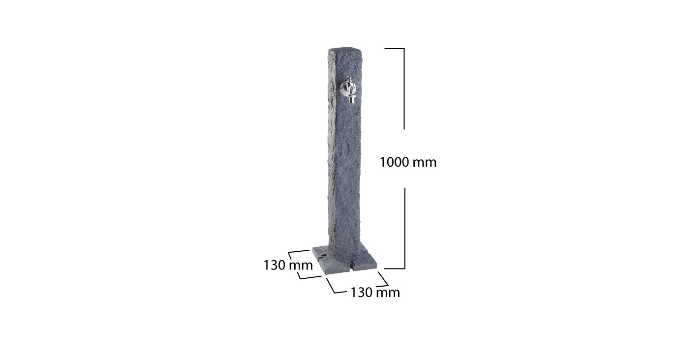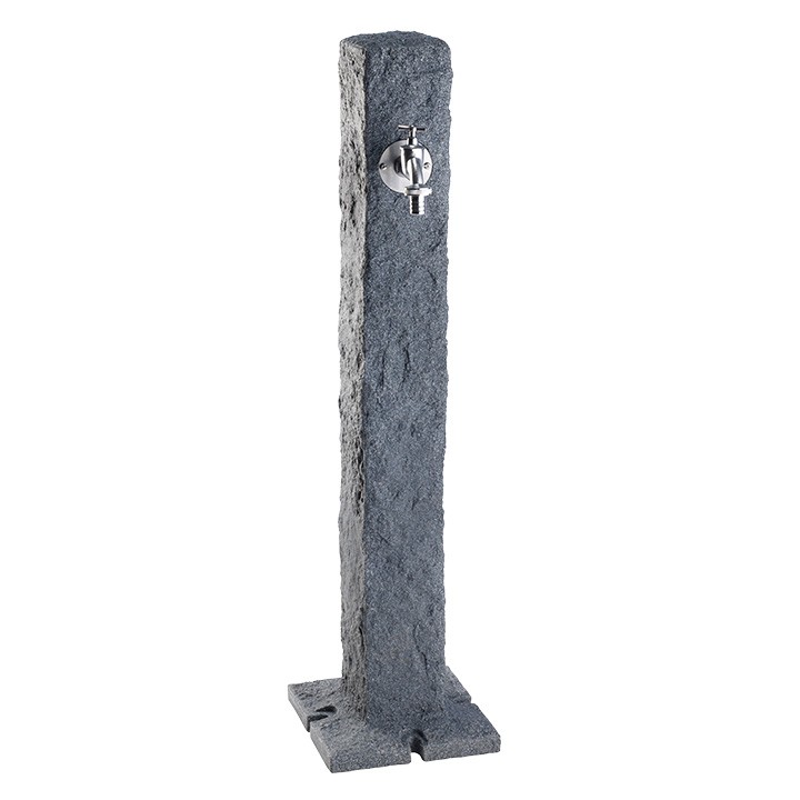Elegancji kran ogrodowy w kolorze ciemnego granitu przydaje się w każdym ogrodzie. Ciekawa, chropowata powierzchnia, do złudzenia przypomina naturalny kamień, pięknie wpasowuje się w otoczenie.