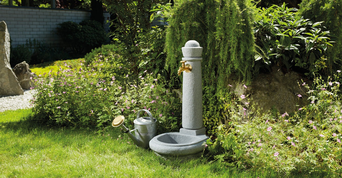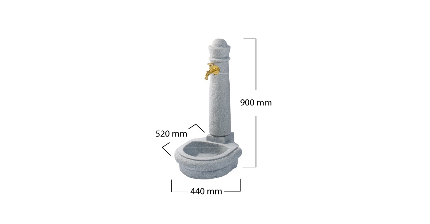 Kran ogrodowy wygląda bardzo realistycznie, jak kamień o odcieniu jasnego granitu.
