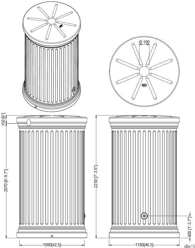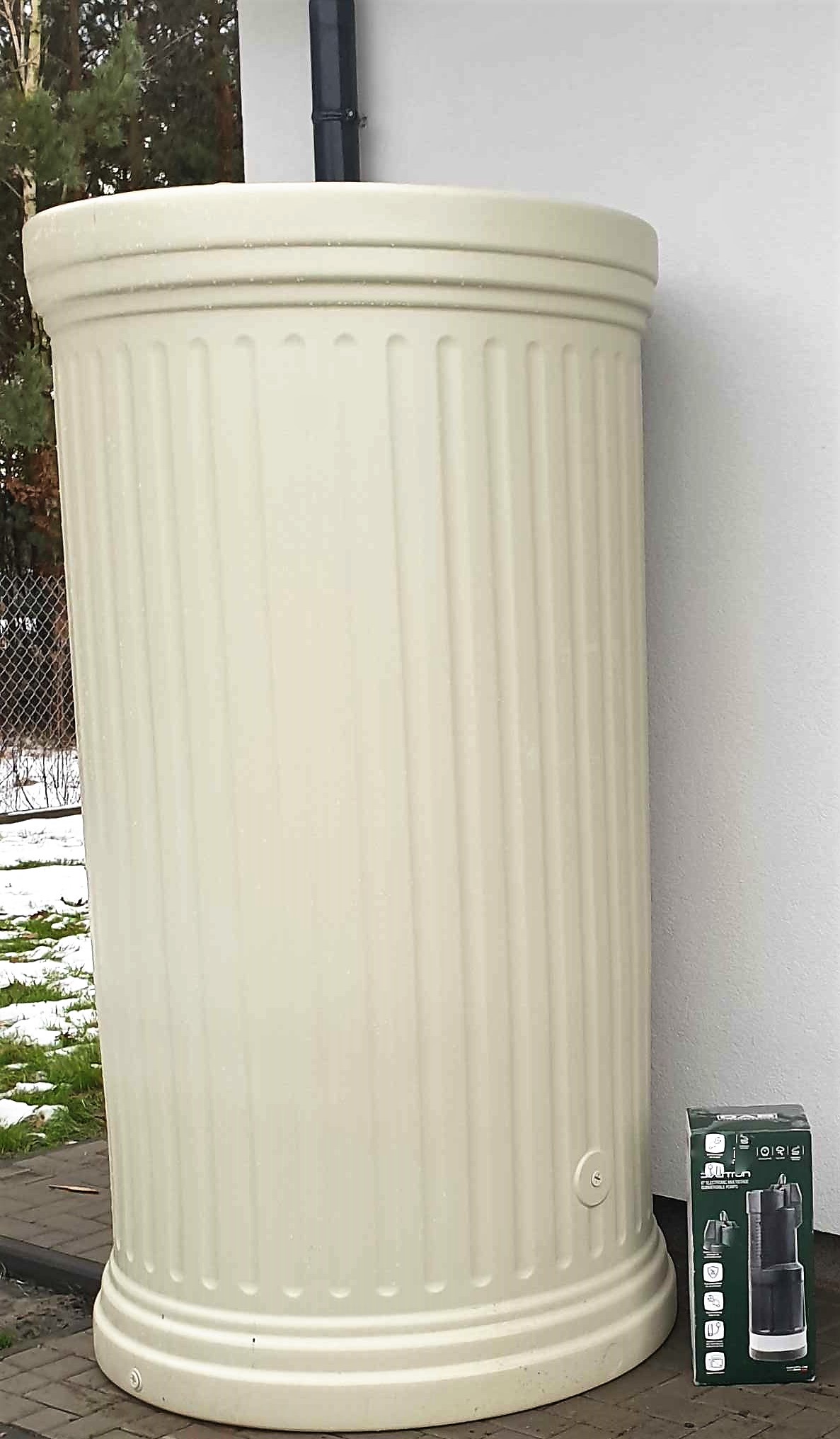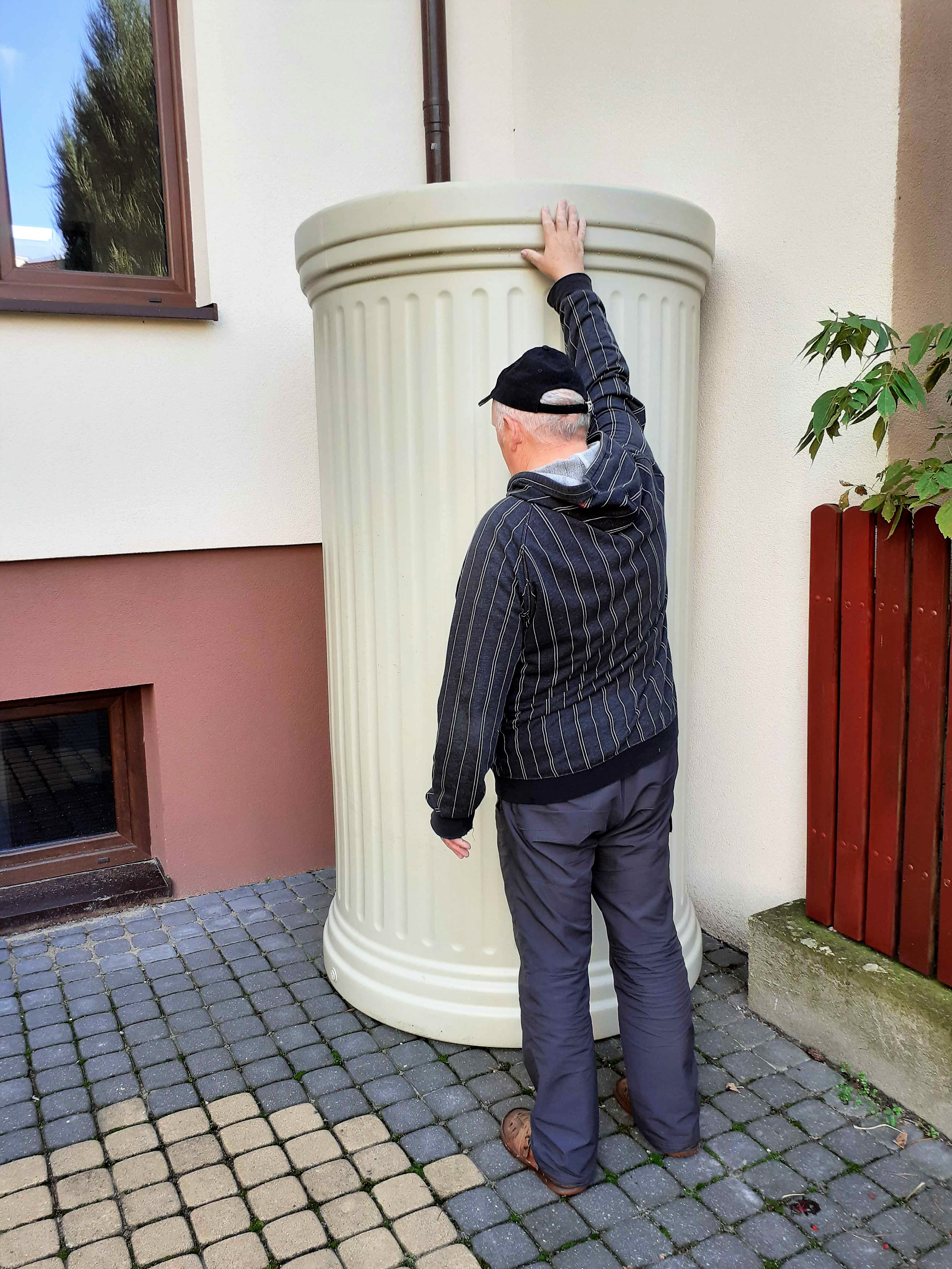 Zbiornik ma klasyczny, kolumnowy kształt, który świetnie wpisuje się zarówno w nowoczesne, jak i tradycyjne otoczenie. Wykonany z wytrzymałego polietylenu z recyklingu, odporny na promieniowanie UV, mróz i deszcz – gwarantuje trwałość przez wiele sezonów.