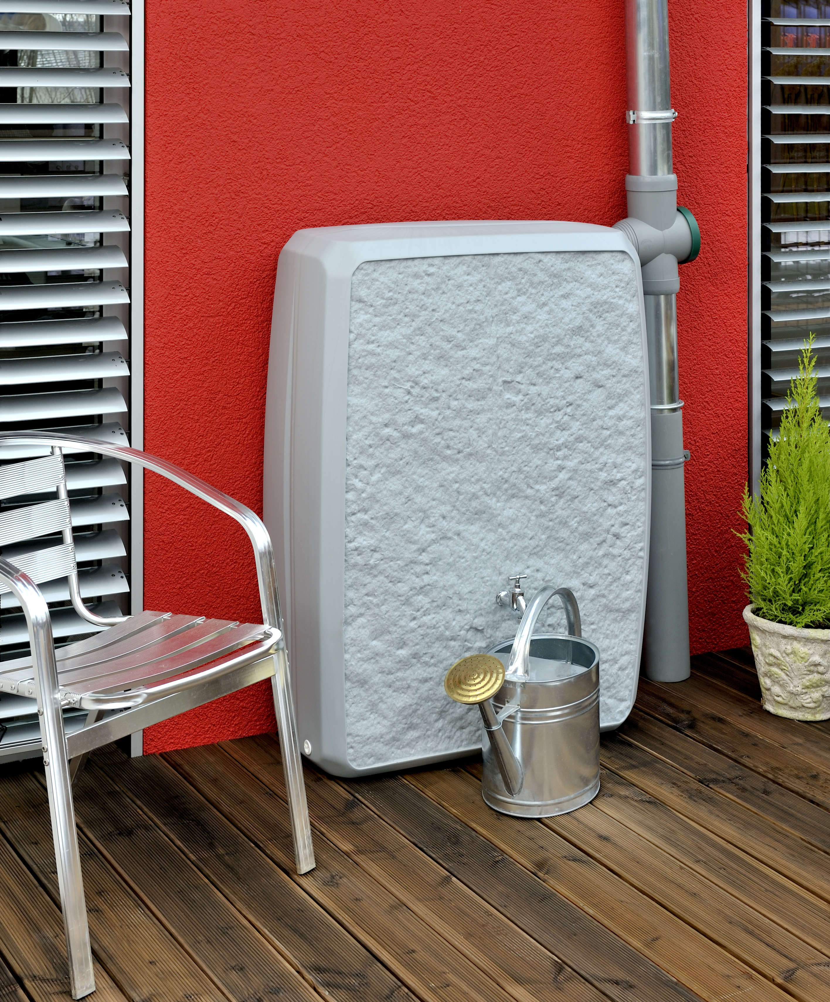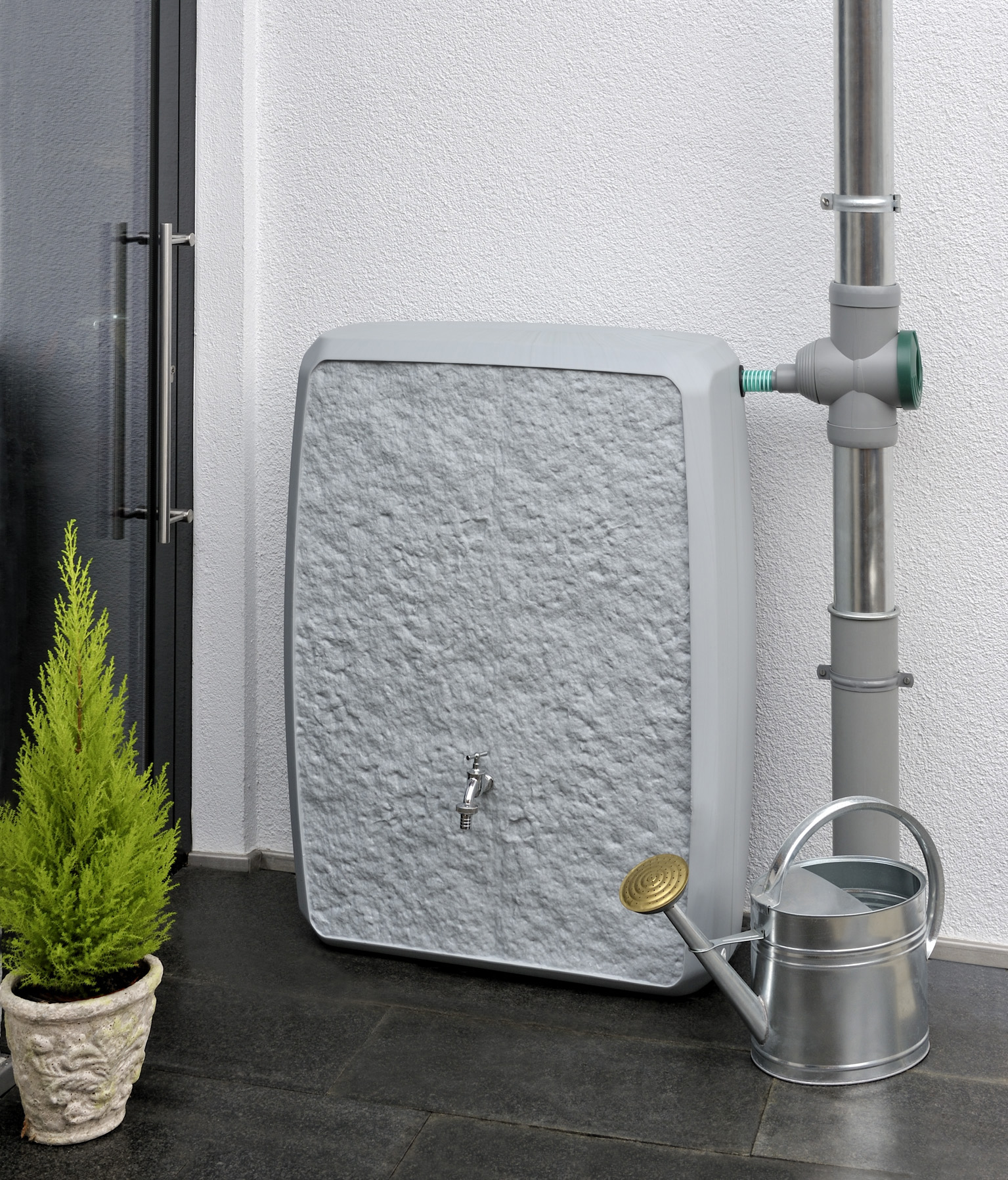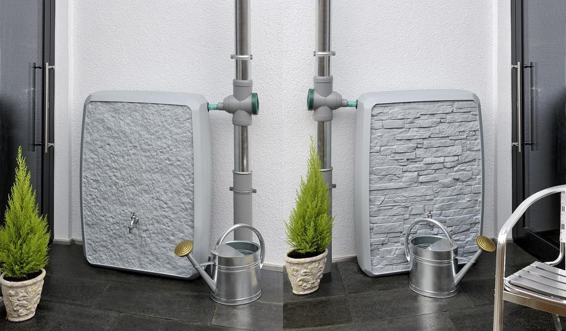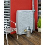 Zbiornik na deszczówkę MUR KAMIEŃ, zbiornik o naturalnym, stonowanym wyglądzie. Z jednej strony wygląda jak kamień lub mur, a z drugiej dekor ma wzór nakładających się na siebie kamieni. Możesz wybrać, która strona zbiornika będzie zdobiła Twój ogród lub taras. Dzięki swoim rozmiarom idealnie nadaje się do małych i wąskich przestrzeni. Na górze zbiornika można postawić kwiaty w doniczce. Zbiornik wykonany jest z trwałego polietylenu, który nadaje się do recyklingu. Zbiornik dekoracyjny świetnie nadaje się również do małych ogródków i tarasów przy domach, bloku, dzięki zbiornikowi zaosczędzisz wykorzystanie wody miejskiej do podlewania trawnika, kwiatów, zieleni.