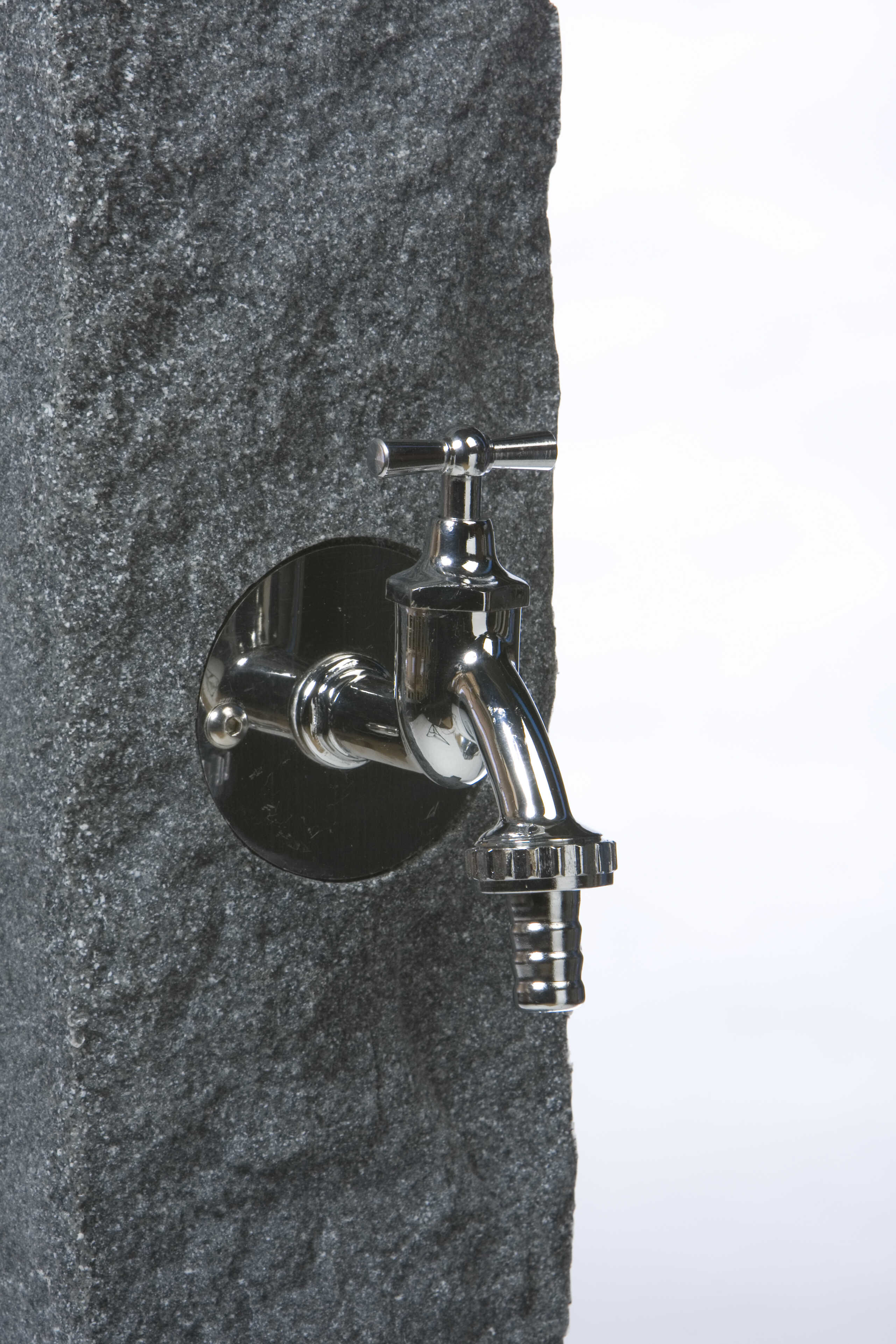 Kran ogrodowy Kamień jest imitacją naturalnego kamienia, dzięki temu łatwo go wkomponować przy domu i w ogrodzie, można go też zestawić z innymi kamiennymi akcentami w ogrodzie. Punkt poboru wody pozwala na łatwe i wygodne korzystanie ze zgromadzonej wody. Kranik wykonany jest z wysokiej jakości stali chromowanej. Kran ogrodowy można podpiąc standardowo przez szybkozłącze od spodu lub tyłu, pasuje do większosci węży ogrodowych. Jeśli masz zamontowany zbiornik na deszczówkę, punkt poboru wody może być z nim podłączony, a Ty korzystając z deszczówki zaoszczędzisz pieniądze, a dodatkowo Twoje rosliny będą Ci wdzięczne, ponieważ woda deszczowa zawiera mnóstwo składników mineralnych, nie jest chlorowana, więc nie pozostawia białych osadów, krótko mówiąc rośliny kochają deszcz.