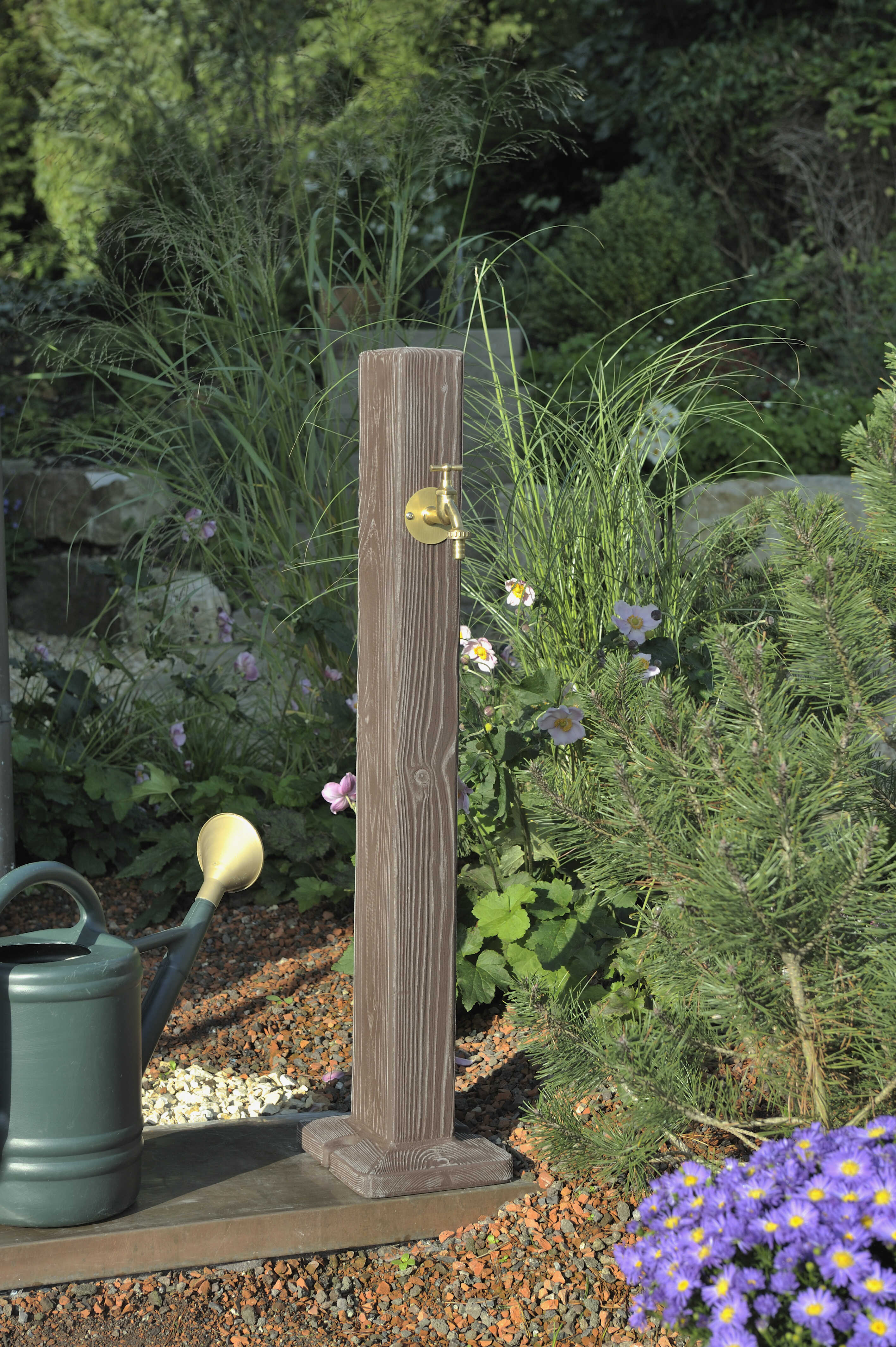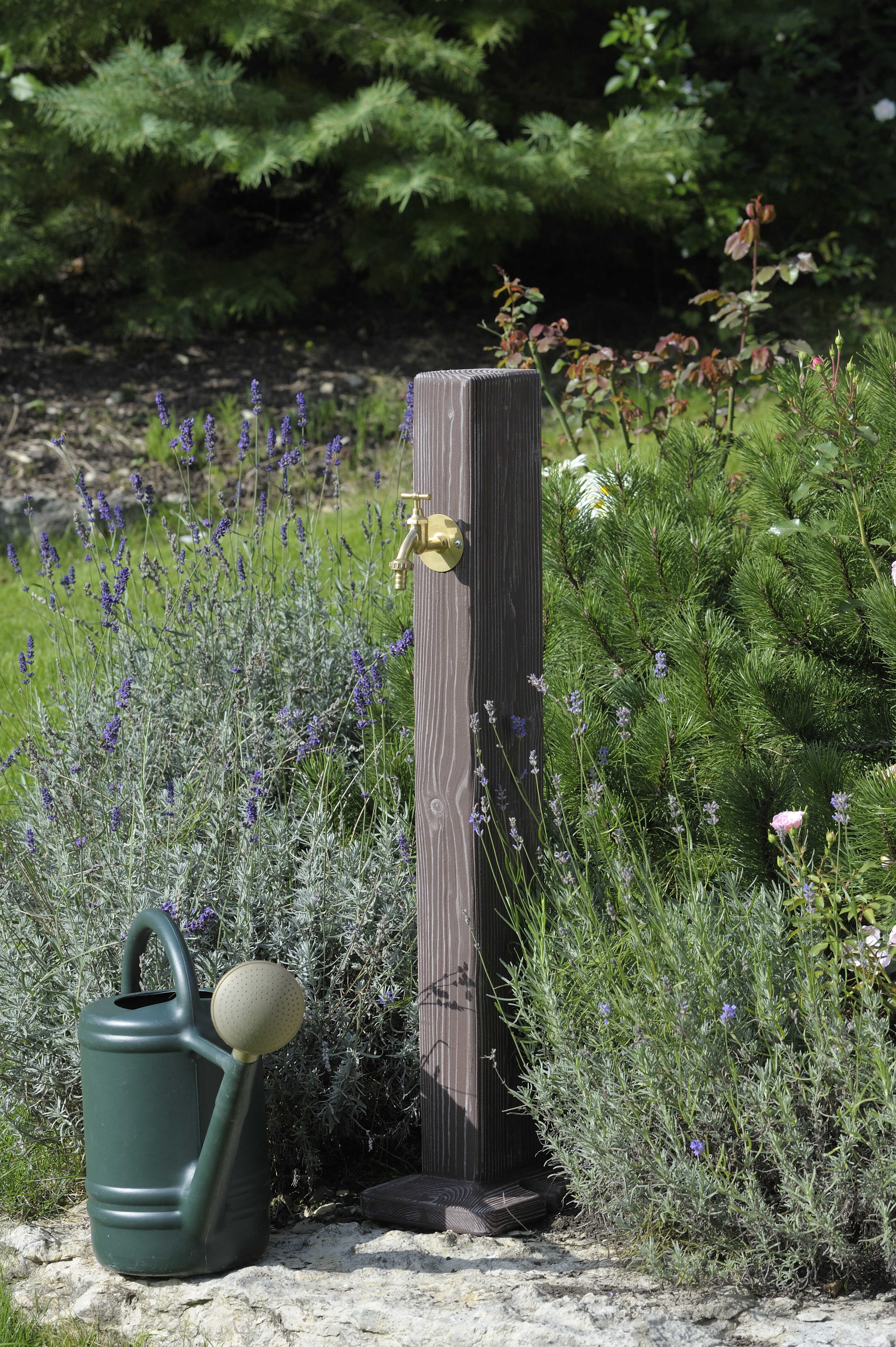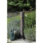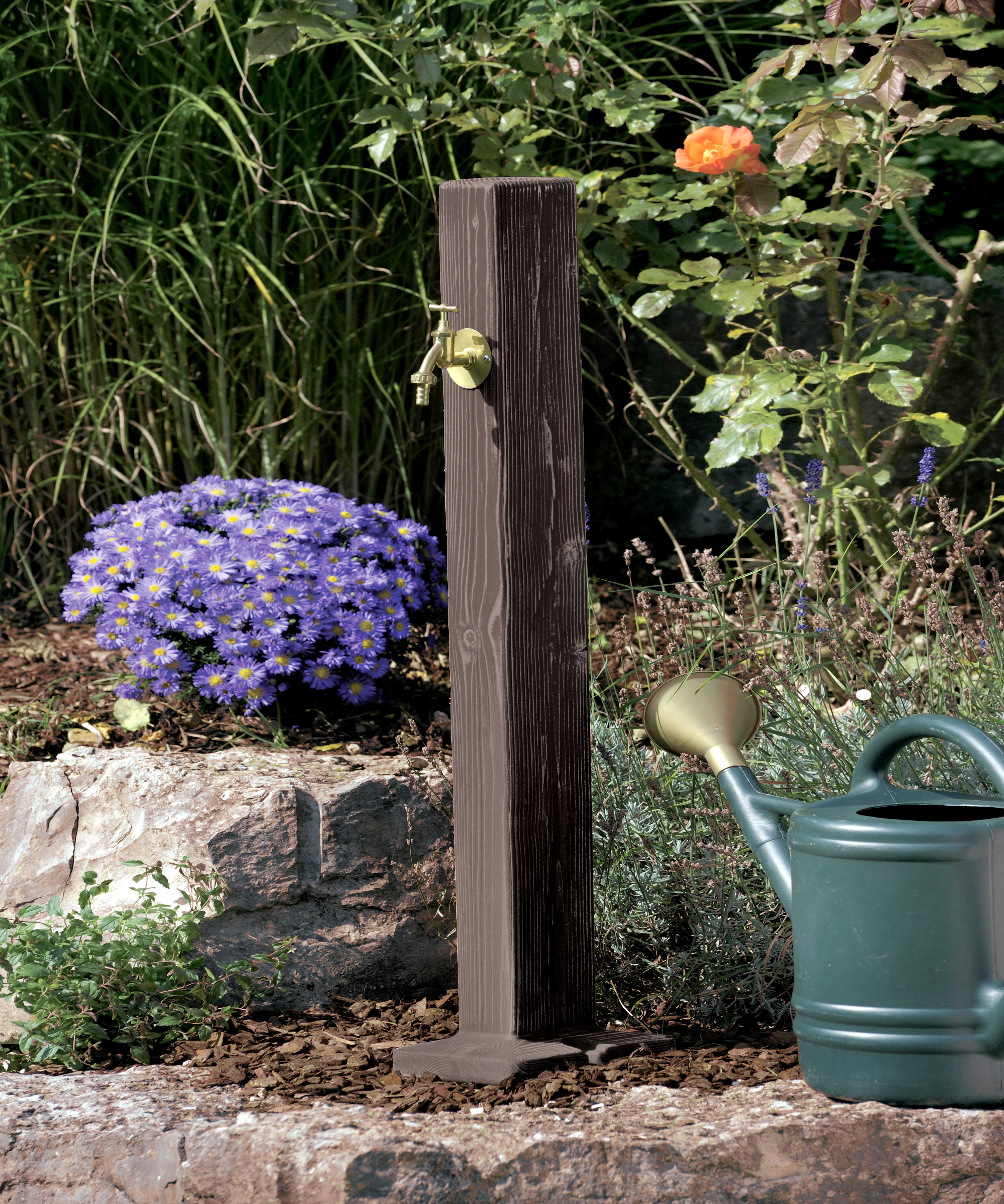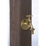 Kran ogrodowy Las w kolorze orzechowym jest imitacją naturalnego drewna, dzięki temu łatwo go wkomponować w ogrodzie, wygląda bardzo realistycznie. Punkt poboru wody pozwala na łatwe i wygodne korzystanie ze zgromadzonej wody. Kranik wykonany jest z mosiądzu.. Kran ogrodowy można podpiąc standardowo przez szybkozłącze od spodu lub tyłu, pasuje do większosci węży ogrodowych. Jeśli masz zamontowany zbiornik na deszczówkę, punkt poboru wody może być z nim podłączony, a Ty korzystając z deszczówki zaoszczędzisz pieniądze, a dodatkowo Twoje rośliny będą Ci wdzięczne, ponieważ woda deszczowa zawiera mnóstwo składników mineralnych, nie jest chlorowana, więc nie pozostawia białych osadów, krótko mówiąc rośliny kochają deszcz.