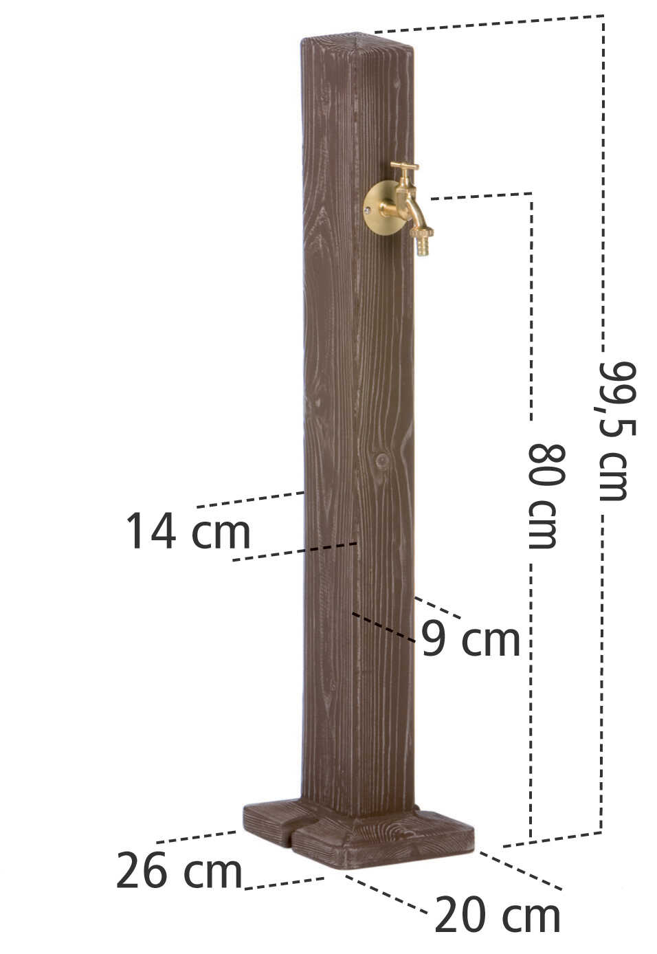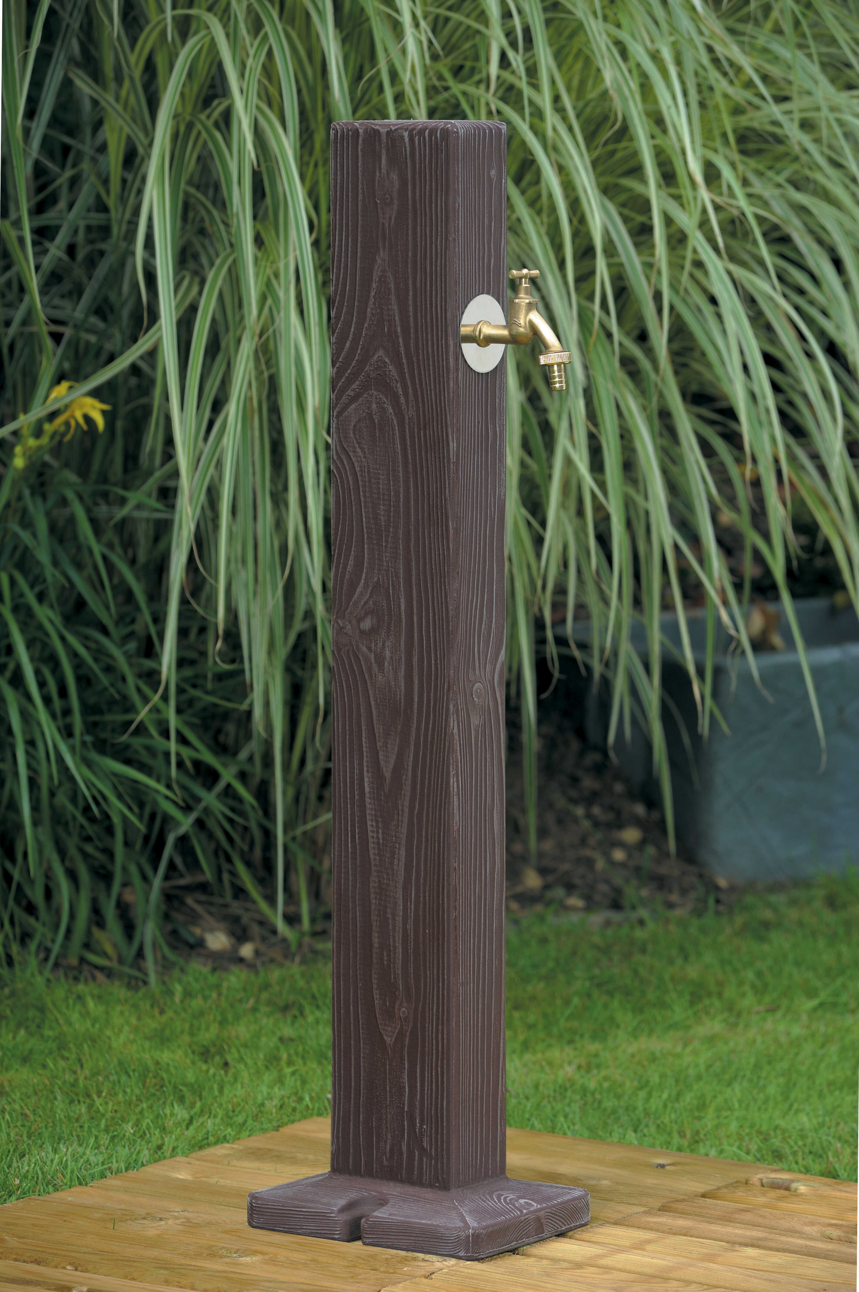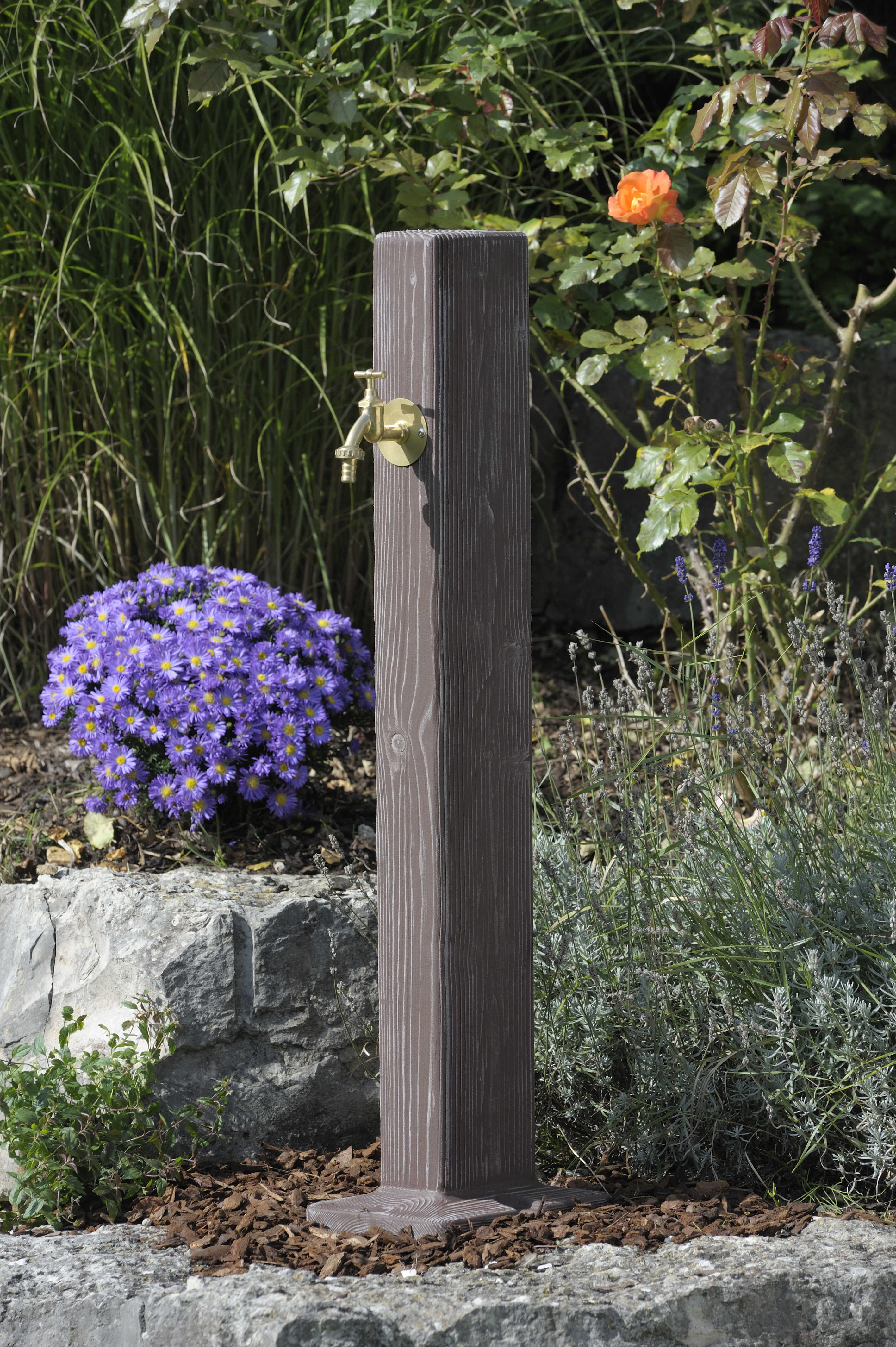 Kran ogrodowy Las w kolorze orzechowym jest imitacją naturalnego drewna, dzięki temu łatwo go wkomponować w ogrodzie, wygląda bardzo realistycznie. Punkt poboru wody pozwala na łatwe i wygodne korzystanie ze zgromadzonej wody. Kranik wykonany jest z mosiądzu.. Kran ogrodowy można podpiąc standardowo przez szybkozłącze od spodu lub tyłu, pasuje do większosci węży ogrodowych. Jeśli masz zamontowany zbiornik na deszczówkę, punkt poboru wody może być z nim podłączony, a Ty korzystając z deszczówki zaoszczędzisz pieniądze, a dodatkowo Twoje rośliny będą Ci wdzięczne, ponieważ woda deszczowa zawiera mnóstwo składników mineralnych, nie jest chlorowana, więc nie pozostawia białych osadów, krótko mówiąc rośliny kochają deszcz.