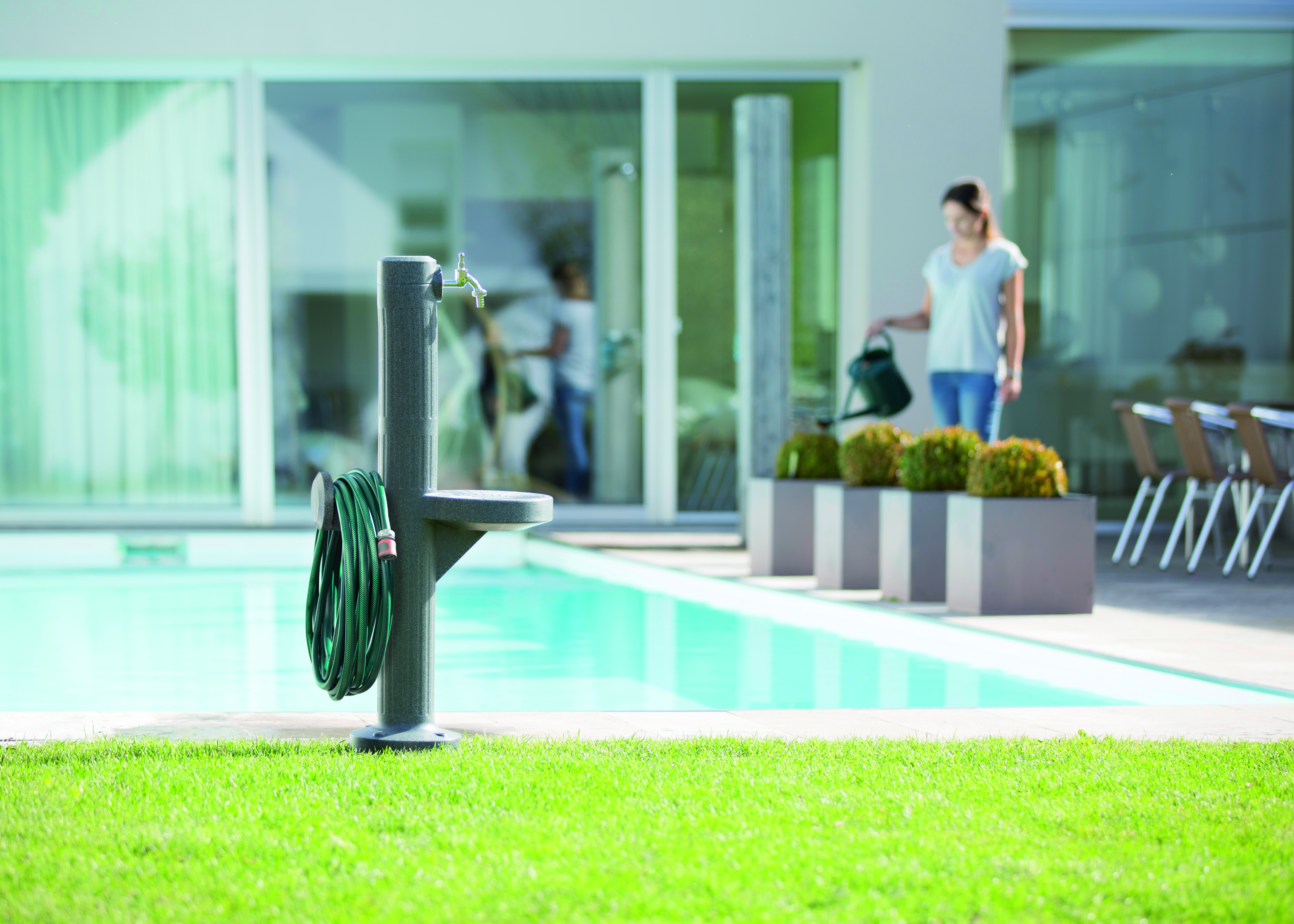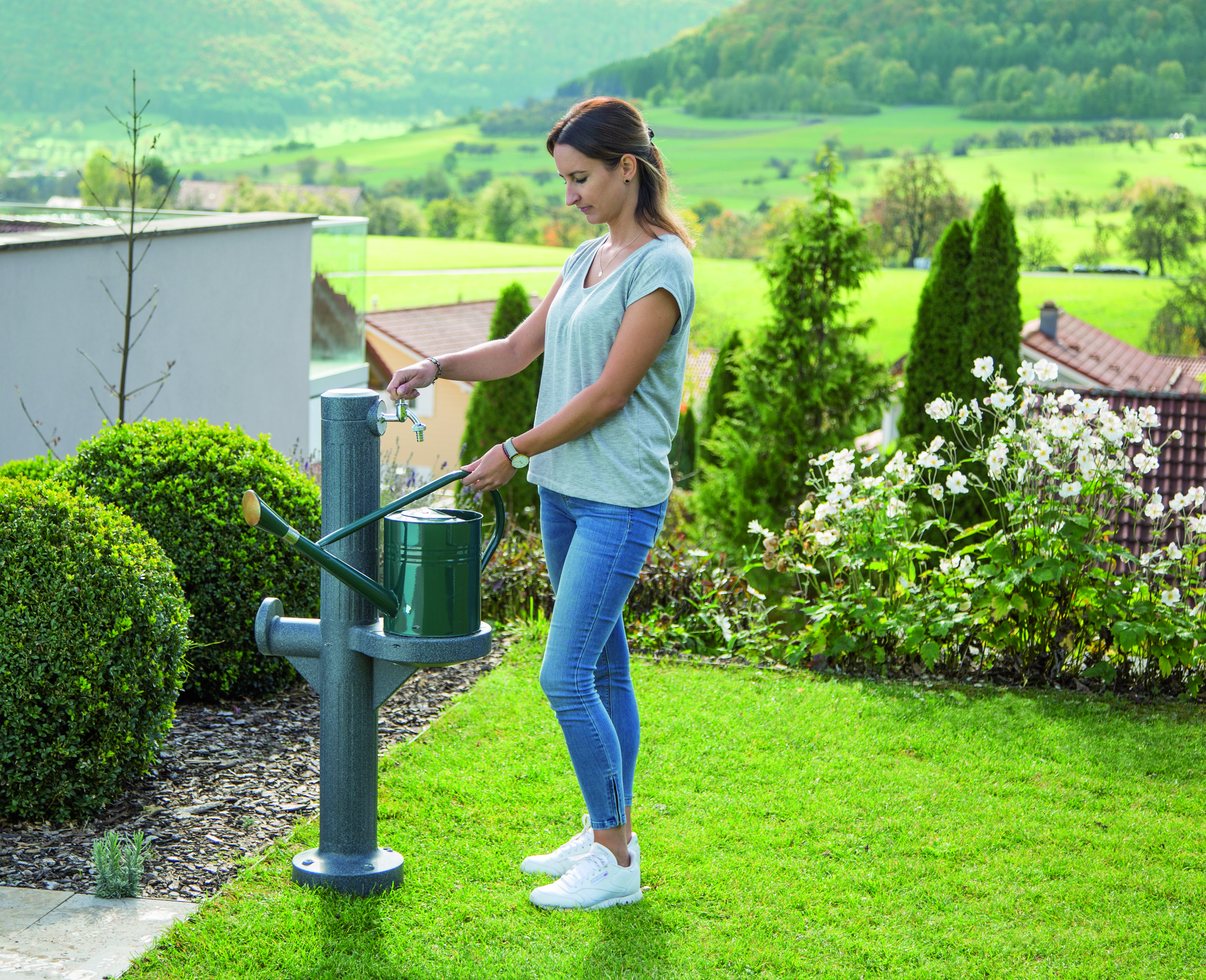 Kran ogrodowy Kolumna jest prosty, a zarazem elegancki, dlatego łatwo go wkomponować w otoczenie. Ma podstawkę na konewkę oraz uchwyt na wąż ogrodowy. Punkt poboru wody pozwala na łatwe i wygodne korzystanie ze zgromadzonej wody. Kranik wykonany jest z wysokiej jakości stali chromowanej. Kran ogrodowy można podpiąć standardowo przez szybkozłącze od spodu lub tyłu, pasuje do większosci węży ogrodowych. Jeśli masz zamontowany zbiornik na deszczówkę, punkt poboru wody może być z nim podłączony, a Ty korzystając z deszczówki zaoszczędzisz pieniądze, a dodatkowo Twoje rośliny będą Ci wdzięczne, ponieważ woda deszczowa zawiera mnóstwo składników mineralnych, nie jest chlorowana, więc nie pozostawia białych osadów, krótko mówiąc rośliny kochają deszcz.