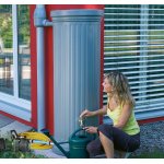 Zbieracz Speedy pasuje do najpopularniejszych rynien – o średnicy od 75 do 100 mm – wykonanych z tworzywa sztucznego lub metalu. Dzięki wbudowanemu filtrowi skutecznie zatrzymuje liście i większe zanieczyszczenia, zapewniając czystszą wodę do użytku w ogrodzie. Aby filtr działał sprawnie, należy regularnie go czyścić – nagromadzone liście mogą blokować przepływ wody i ograniczać skuteczność zbierania deszczówki. Funkcja lato/zima umożliwia łatwe przełączenie trybu zbierania lub zatrzymania przepływu w sezonie zimowym.