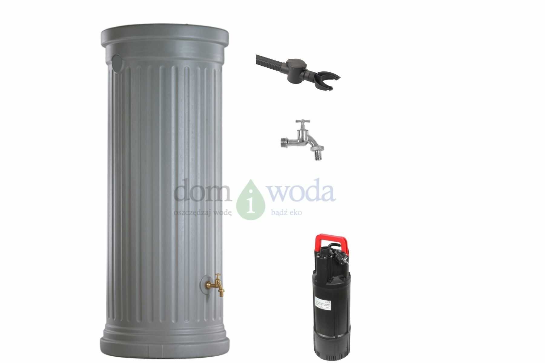 Zbiornik Kolumna 1000 litrów z automatyczną pompą zatapialną to kompletne, nowoczesne rozwiązanie do zbierania i wykorzystywania deszczówki w ogrodzie. Klasyczny, neutralny design pasuje do każdego otoczenia, a duża pojemność pozwala magazynować wodę opadową na wiele dni podlewania.
