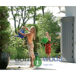 Zbiornik wyposażony jest w praktyczny otwór górny o średnicy 18 cm, który umożliwia wygodne umieszczenie pompy zatapialnej wewnątrz zbiornika. Dzięki temu możesz korzystać z deszczówki bez konieczności noszenia konewek – po prostu podłącz swój wąż ogrodowy lub zraszacz, a woda popłynie automatycznie pod ciśnieniem.