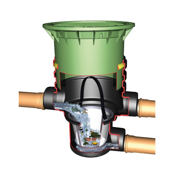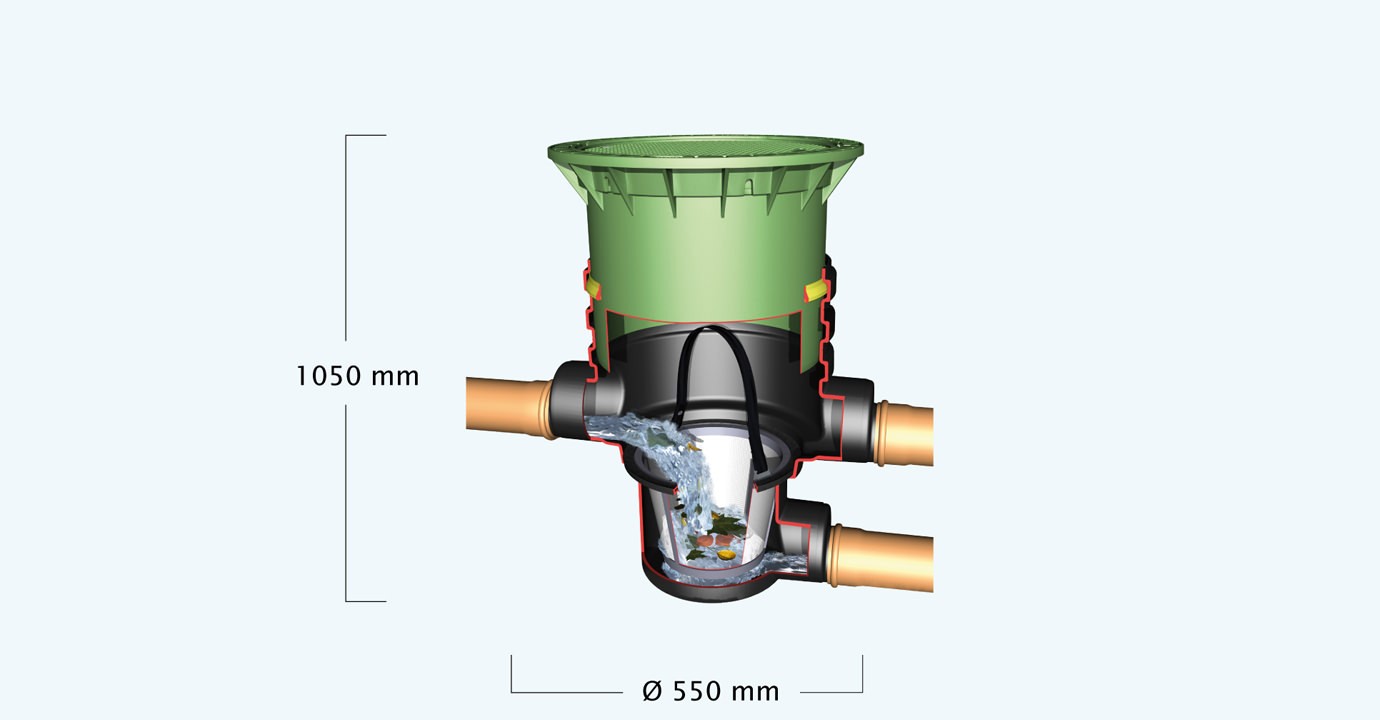 Służy do zatrzymywania zanieczyszczeń stałych i zapobiega zamulaniu systemu gromadzenia deszczówki.