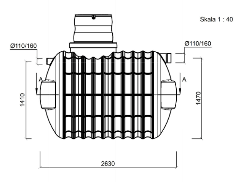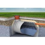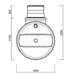 3.Zbiornik w wersji podstawowej przeznaczony jest do montażu na głębokości wynikającej z jego średnicy + maksymalnie 1m przykrycia górnej powierzchni. Dla przykładu zbiornik o średnicy 1,6m może zostać zamontowany w wykopie którego głębokość będzie nie większa niż 2,6m. W większości przypadków wystarcza montaż z przykryciem 0,5m warstwą ziemi, jest ona