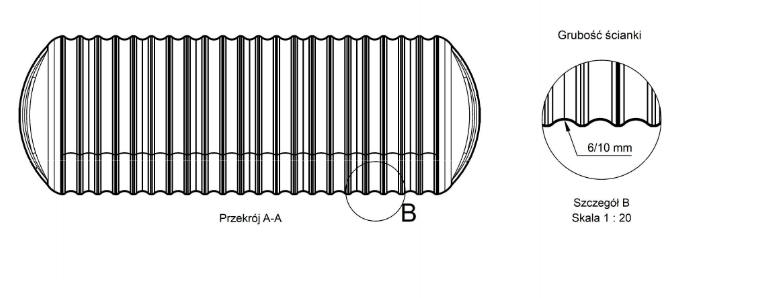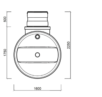 3.Zbiornik w wersji podstawowej przeznaczony jest do montażu na głębokości wynikającej z jego średnicy + maksymalnie 1m przykrycia górnej powierzchni. Dla przykładu zbiornik o średnicy 1,6m może zostać zamontowany w wykopie którego głębokość będzie nie większa niż 2,6m. W większości przypadków wystarcza montaż z przykryciem 0,5m warstwą ziemi, jest ona