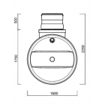 3.Zbiornik w wersji podstawowej przeznaczony jest do montażu na głębokości wynikającej z jego średnicy + maksymalnie 1m przykrycia górnej powierzchni. Dla przykładu zbiornik o średnicy 1,6m może zostać zamontowany w wykopie którego głębokość będzie nie większa niż 2,6m. W większości przypadków wystarcza montaż z przykryciem 0,5m warstwą ziemi, jest ona