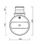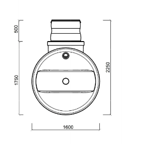 3.Zbiornik w wersji podstawowej przeznaczony jest do montażu na głębokości wynikającej z jego średnicy + maksymalnie 1m przykrycia górnej powierzchni. Dla przykładu zbiornik o średnicy 1,6m może zostać zamontowany w wykopie którego głębokość będzie nie większa niż 2,6m. W większości przypadków wystarcza montaż z przykryciem 0,5m warstwą ziemi, jest ona