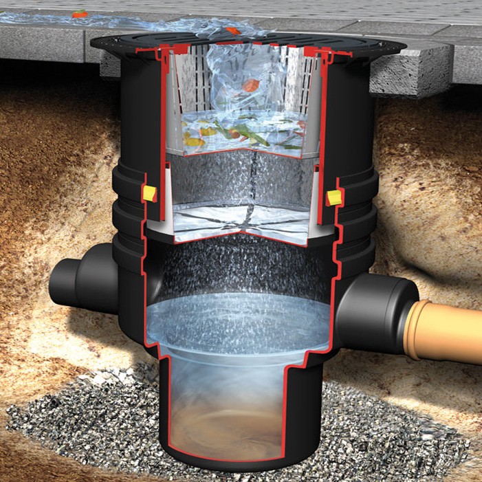 Filtruje wodę deszczową spływającą do rur ściekowych.
