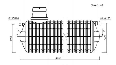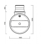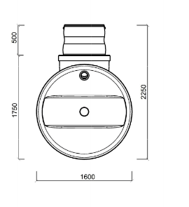 3.Zbiornik w wersji podstawowej przeznaczony jest do montażu na głębokości wynikającej z jego średnicy + maksymalnie 1m przykrycia górnej powierzchni. Dla przykładu zbiornik o średnicy 1,6m może zostać zamontowany w wykopie którego głębokość będzie nie większa niż 2,6m. W większości przypadków wystarcza montaż z przykryciem 0,5m warstwą ziemi, jest ona