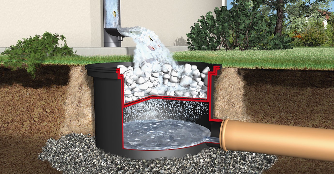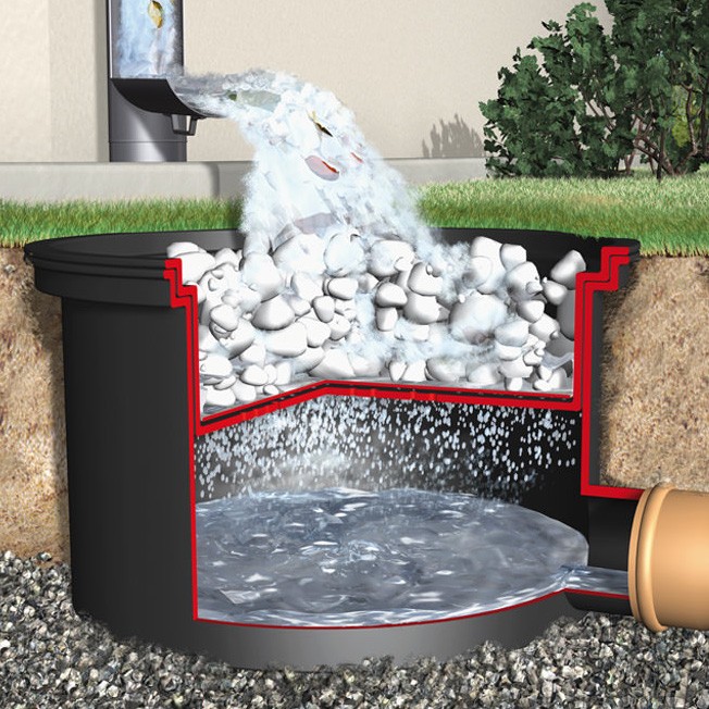 Filtruje wodę wpływającą do zbiornika rozsączającego.
