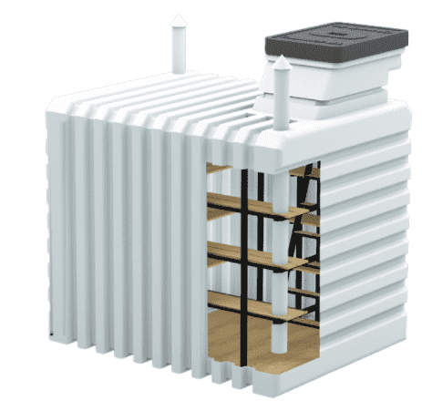 Piwniczka z tworzywa, to długowieczny produkt, wyprodukowany z polietylenu spożywczego o dużej gęstości, co daje żywotność piwnicy ogrodowej nawet 100 lat. Jest bezpieczna dla zdrowia ludzi, nie zmienia smaku ani zapachu przechowywanych rzeczy. Produkt nie ma żadnych łączeń, dzięki temu jest w 100% wodoszczelny i też niedostępny dla gryzoni.