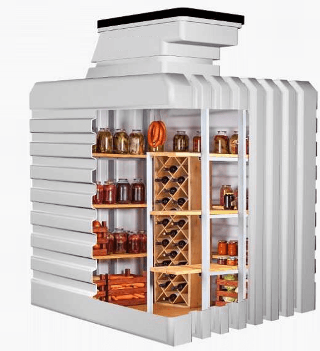 Nowoczesna ziemianka , to innowacyjne pomieszczenie, które może być zarówno piwnicą, spiżarnią, komórką na produkty spożywcze, a nawet winiarnią. Często w naszych domach brakuje miejsca na przechowywanie przetworów, warzyw, innych produktów spożywczych. Z tego rozwiązania ucieszą się z pewnością koneserzy wina, teraz mogą spełnić marzenie o piwnicy z winami. Piwnica działa bezprądowo, niskie koszty eksploatacji sprawiają, że można łatwo spełnić swoje potrzeby i marzenia. Spiżarnia ogrodowa może być wyeksponowana, taki efekt uzyskamy wybierając model z wejściem bocznym, wtedy robimy tez nasyp, który można zaaranżować według własnej wizji: zrobić nasadzenia, obłożyć. Ziemianka może też być dyskretna, ukryta w ogrodzie, to taki sekretny pokój w ogrodzie.