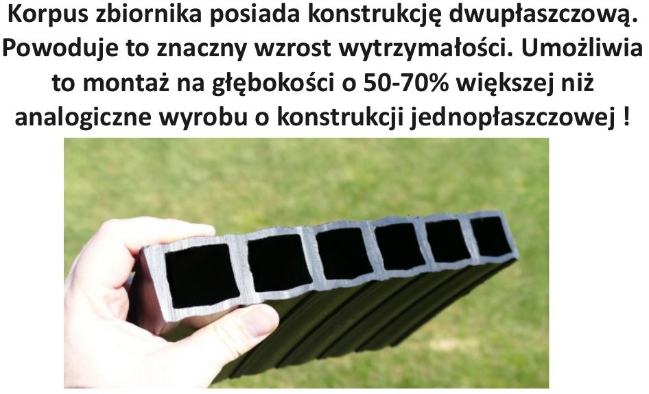 Zbiornik został zaprojektowany do gromadzenia wody opadowej, ale może również pełnić funkcję zbiornika na ścieki lub zbiornika przeciwpożarowego. Jego wszechstronność sprawia, że doskonale sprawdzi się zarówno w gospodarstwach domowych, jak i w zastosowaniach przemysłowych.